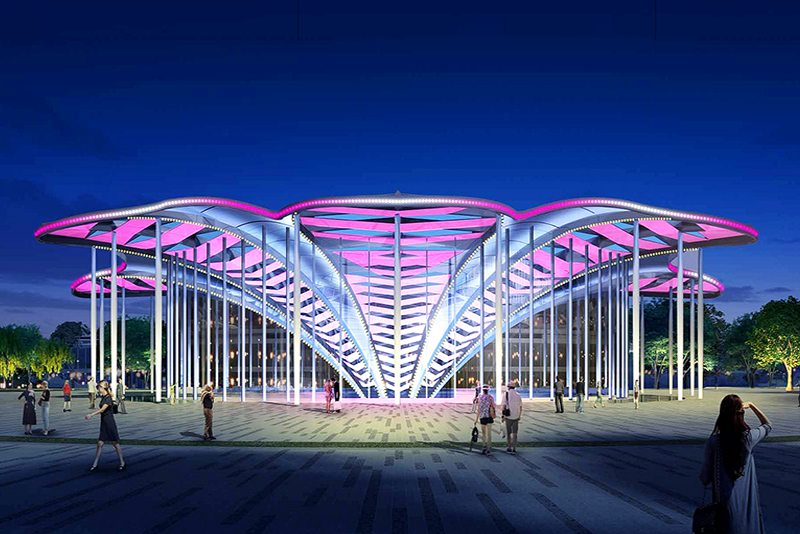 此項目總建筑面積4.6萬平方米,分為南北兩個區(qū),通過石榴花造型連為一體,建筑風(fēng)格獨特,結(jié)構(gòu)新穎,但加工難度極大,我們承接了2800噸用量,針對此類異型鋼構(gòu)件制作工藝開展了多次技術(shù)研討,最終圓滿完成,得到了地方政府的高度評價,目前此建筑已經(jīng)成為了棗莊的新文化地標(biāo)。