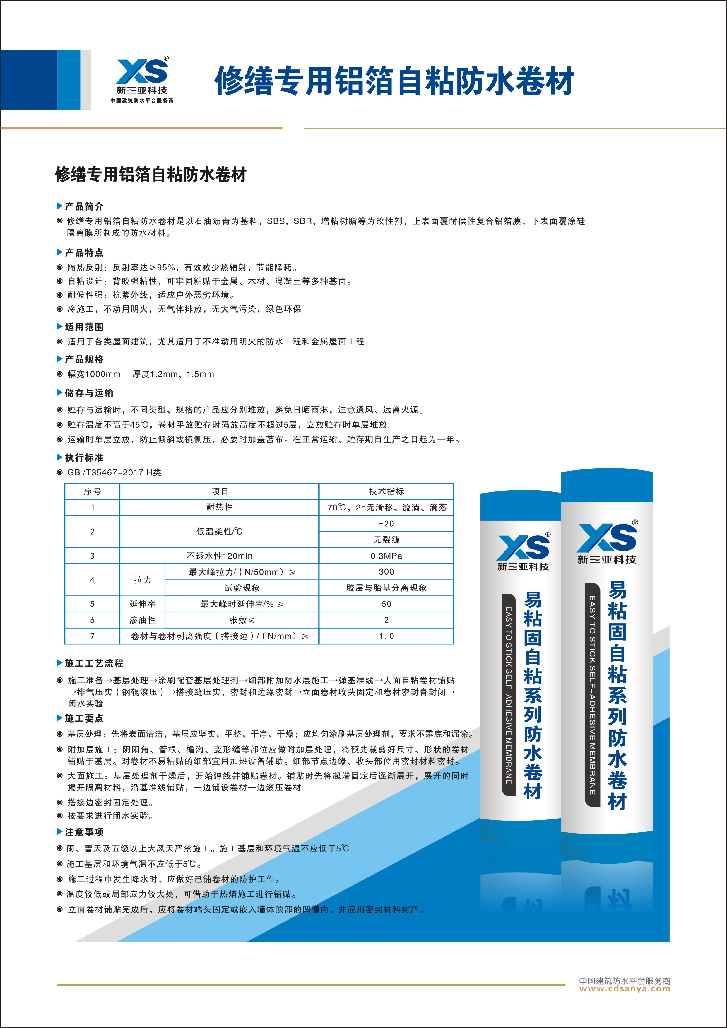 產(chǎn)品簡介 修繕專用鋁箔自粘防水卷材以石油瀝青為基料,SBS、SBR、增粘樹脂等為改性劑,上表面覆耐侯性復(fù)合鋁箔膜,下表面覆涂硅隔離膜所制成的防水材料。 規(guī)格:1.5mm 1m×20m | ![]() |